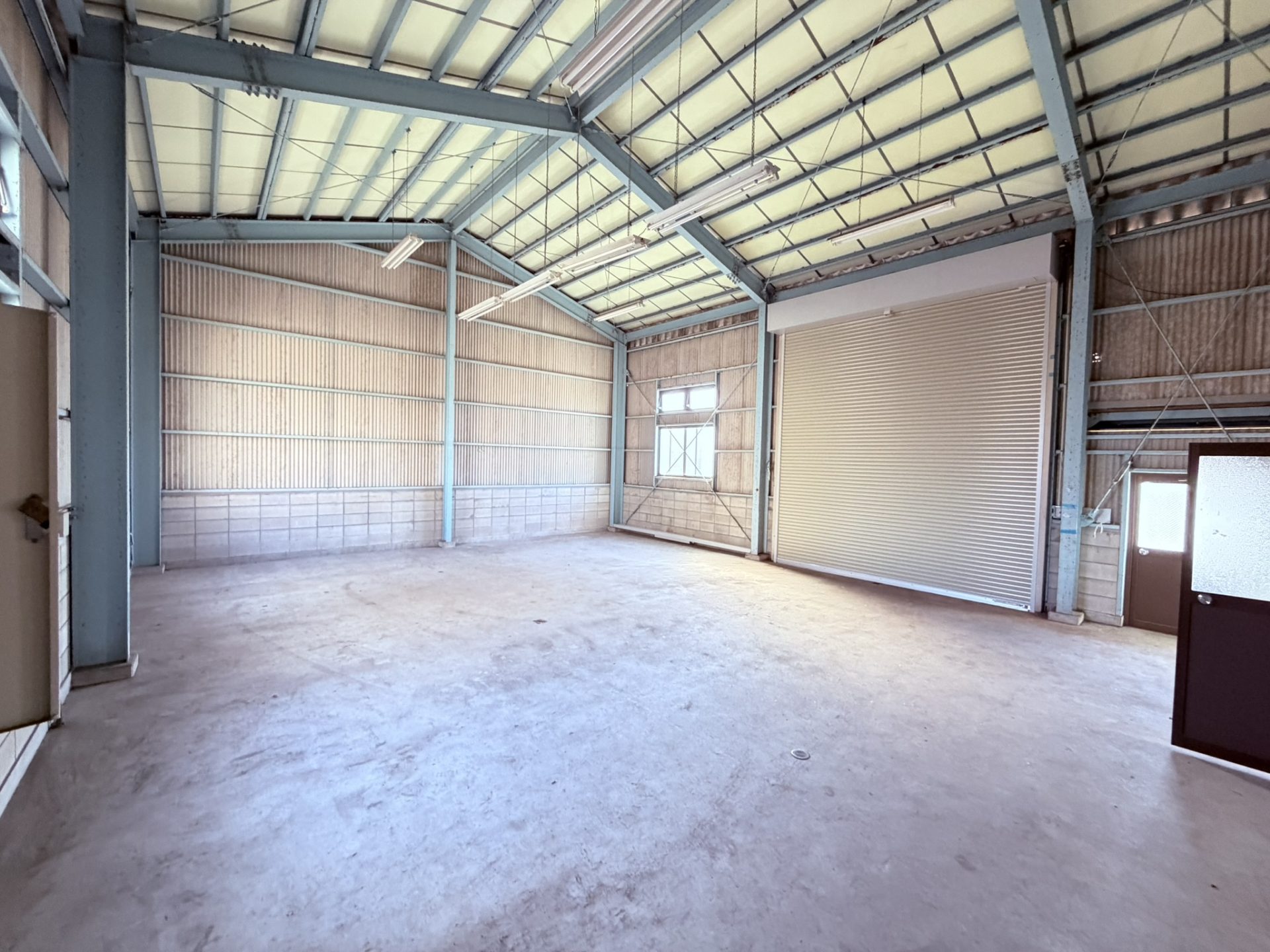建物内には、大型シャッター付倉庫と事務所があり、お風呂付というのも何かと重宝されると思います。